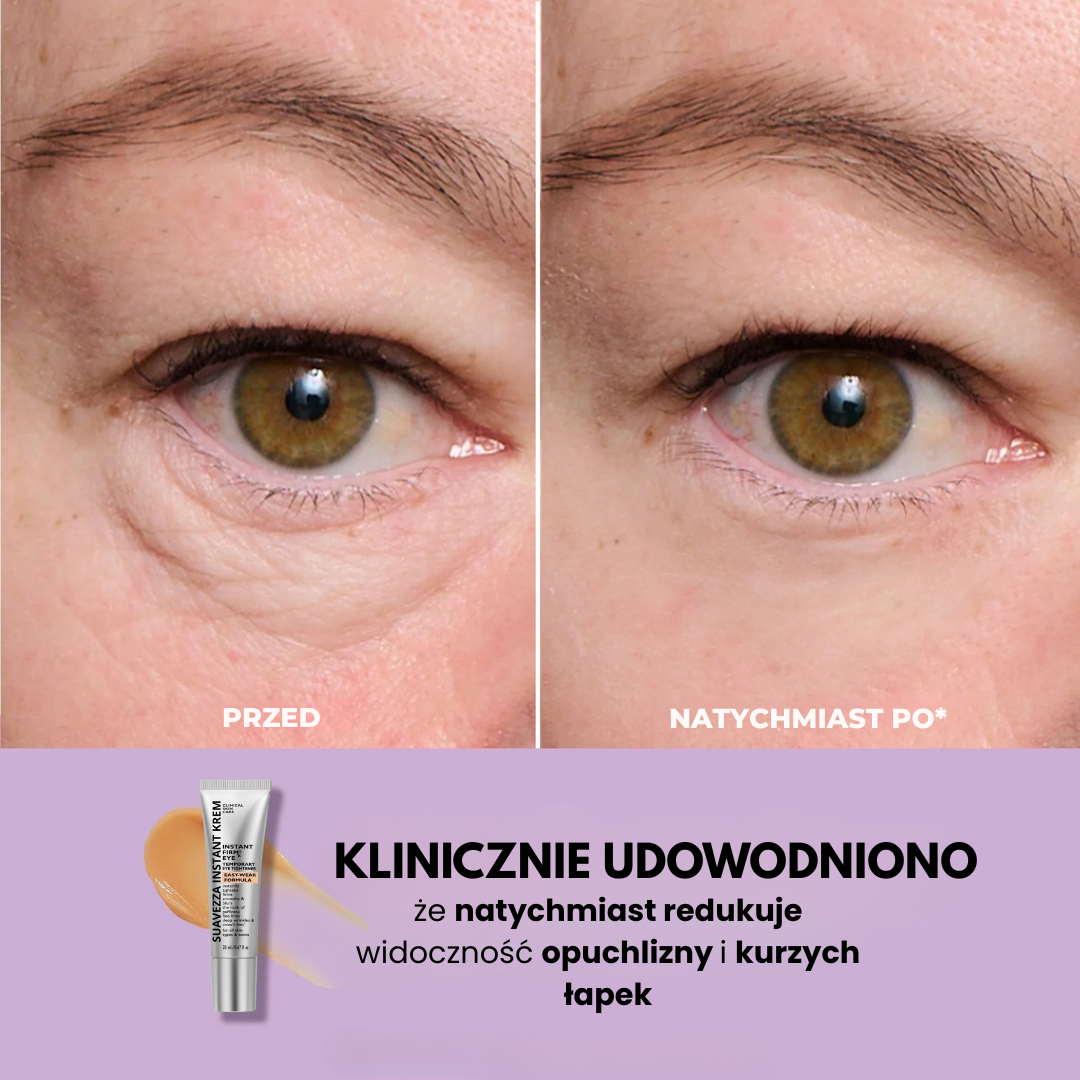 "Próbowałam tylu kremów i zawsze kończyło się rozczarowaniem – biały osad, efekt na chwilę albo podrażnienia. Suavezza naprawdę działa i co najlepsze: skóra wokół oczu wygląda coraz lepiej z każdym dniem."